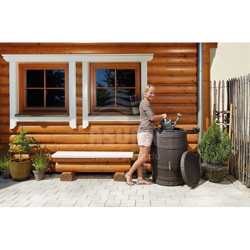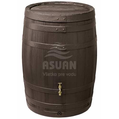 Zásobník rustikálneho vzhľadu napodobňujúci drevený sud má odnímateľné veko s detskou poistkou.