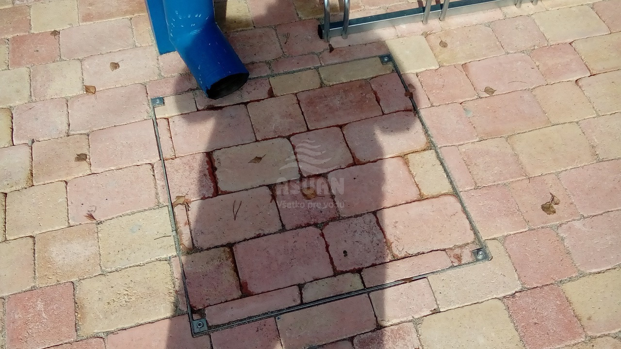 - Po osadení podlahovej krytiny resp. vyšpárovaní keramickej dlažby, sa odstráni silikónové tesnenie, ktoré má zabrániť zatečeniu cementového mlieka pri inštalácii a poklop sa otvorí. Prípadné zvyšky betónu medzi konštrukciou a poklopom sa musia pozorne vyčistiť.