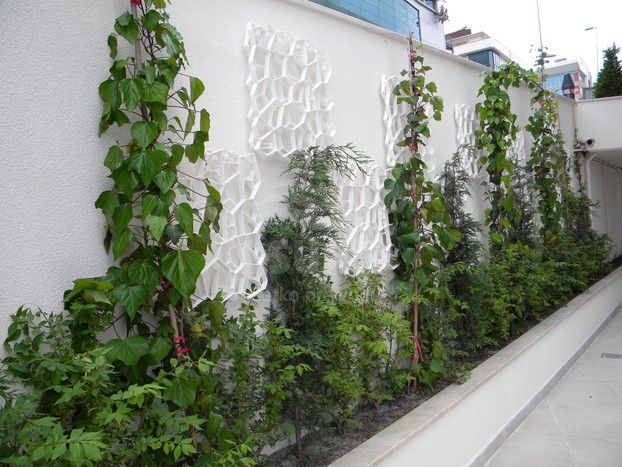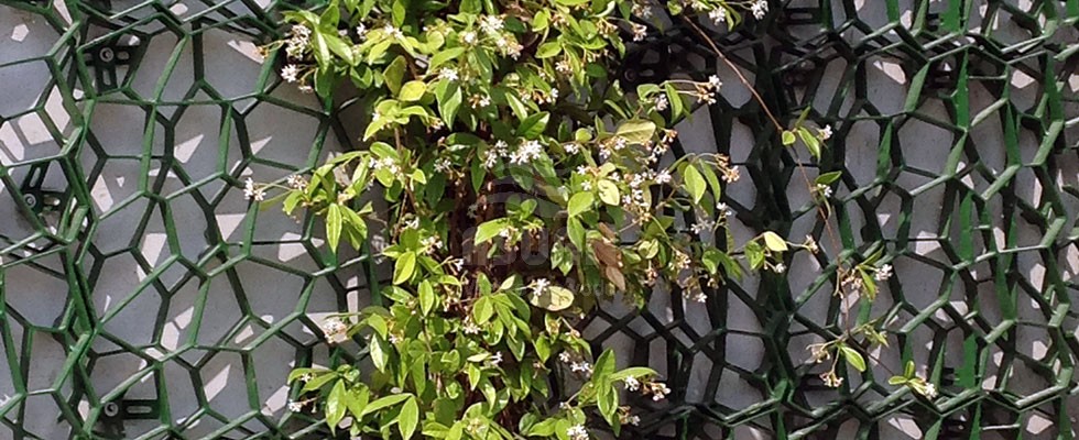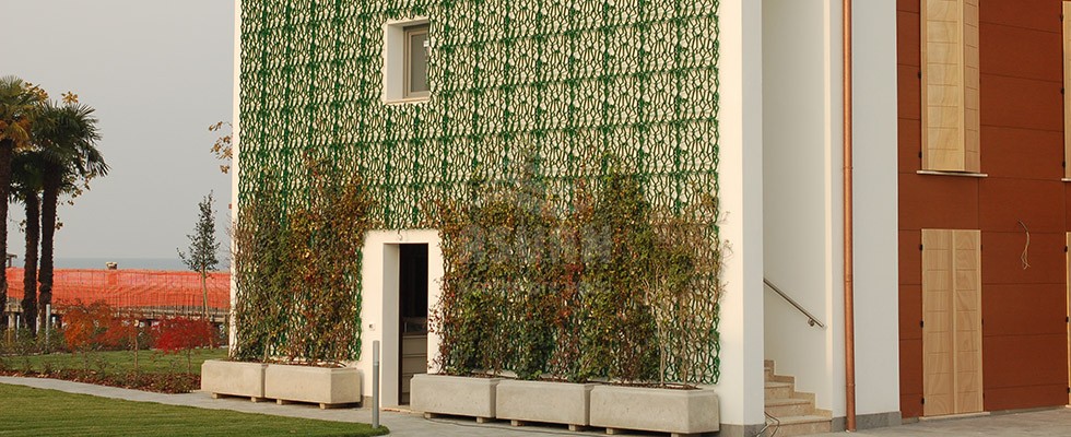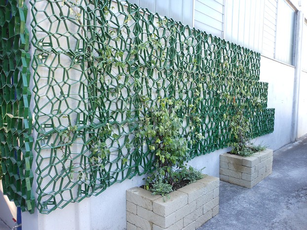 WALL-Y odoláva poveternostným vplyvom, zlepšuje energetickú hospodárnosť budovy a robí ju krajšou estetickejšou. Pôvodná textúra mriežky, ktorá je k dispozícii v dvoch farbách, zdobí steny ešte pred ich zakrytím vegetáciou.