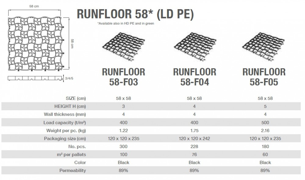 Je to vrcholový produkt z radu RUNFLOOR kompaktný a robustný, pre RUNFLOOR S05 je charakteristické zahustenie vnútorných rebier medzi bunkami. Ideálne pre povrchy s intenzívnou premávkou ako parkoviská a verejná doprava.