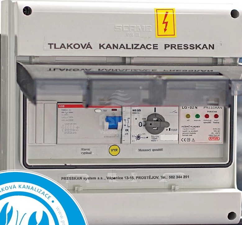 Ovládací automatika THS je určena k napájení, jištění a řízení chodu ponorných kalových čerpadel používaných v tlakové kanalizaci PRESSKAN®.