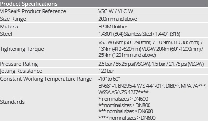 Sometimes sealing challenges come on a truly grand scale. When this is the case, you can rely on VIPSeal® extra wide couplings which are designed to seal large diameter DN200 pipes or above.