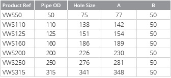 They are particularly well suited to pre-cast structures or the post fitting of pipes. Wall Seals allow for angular and lateral misalignment of the pipes and provide an effective seal against water penetration along the pipe.