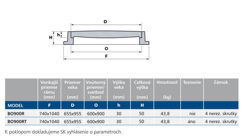 - Rám aj veko sú vyrobené z kompozitného materiálu SMC vystuženého sklennými vláknami zaliatím do formy