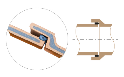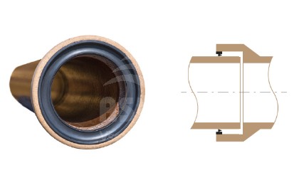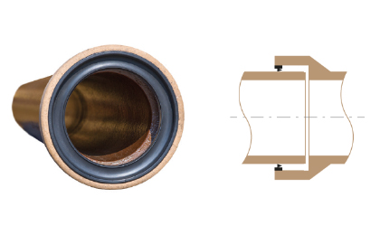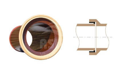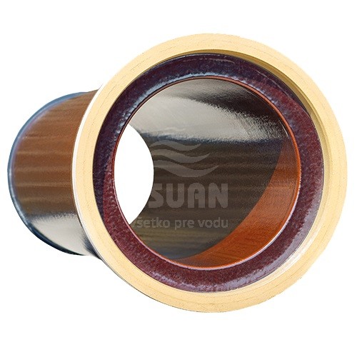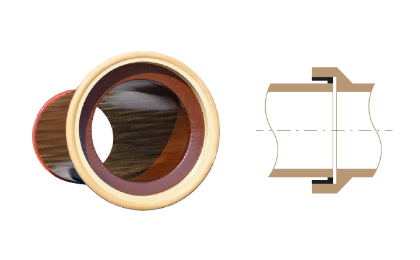 Spoj K je proveden vyrovnávacím prvkem v hrdle (tvrdý polyuretan) a těsnicím prvkem na dříku (měkký polyuretan).