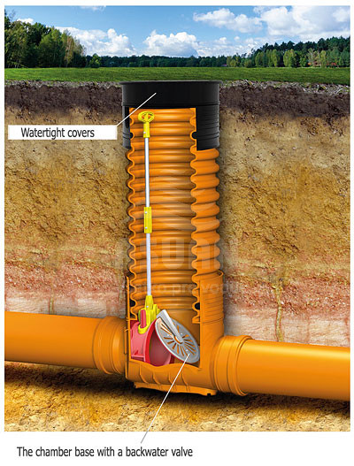 Šachtové dno so spätnou klapkou je určené na napojenie z budou do hlavnej kanalizácie. Slúži k zabráneniu spätného chodu splaškov a pachov späť do potrubia a vniknutiu hlodavcov do systému. Revízna šachta sa používa - montuje na potrubie kanalizácie spravidla pre prípad, aby bola možnosť do kanalizačného potrubia vložiť "krtka" na prečistenie danej vetvy, keď sa upcháva. Ak je kanalizačné potrubie dlhšie doporučujeme vkladať revízne šachty každých 20-25m.