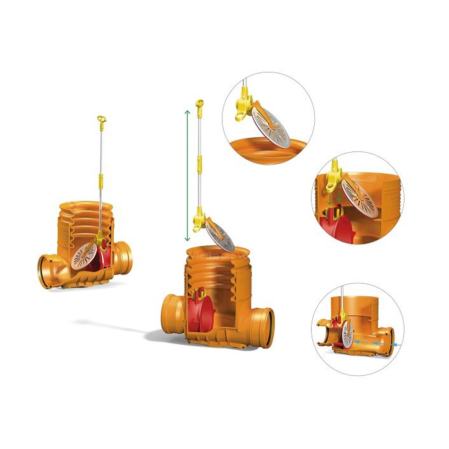 - ovládanie klapky, alebo prípadná demontáž klapky je z povrchu bez nutnosti výkopových prác