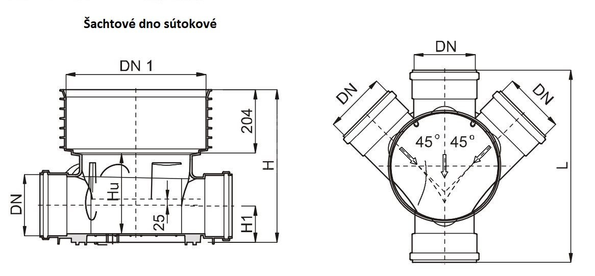 - Možné pripojiť kanalizačné potrubie KG DN / OD 110 - 400