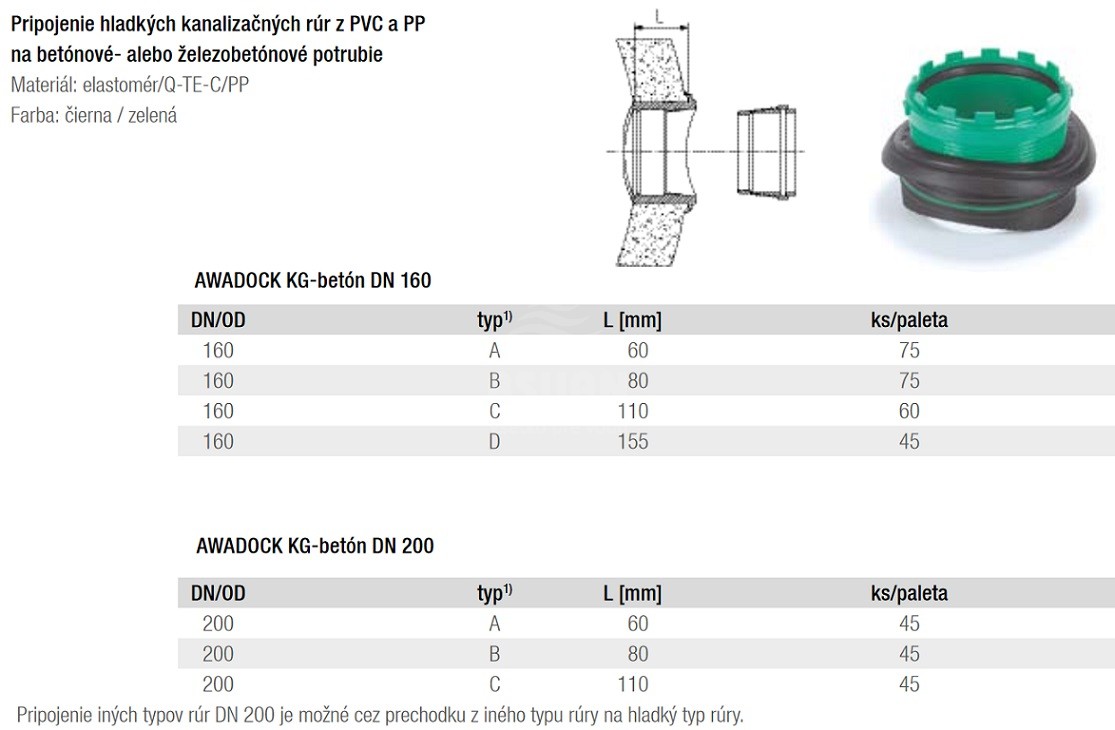 Sortiment AWADOCK bol rozšírený o novú verziu, ktorá umožňuje napájanie PP alebo PVC potrubí DN 160 na betónové, železobetónové alebo kameninové potrubia.