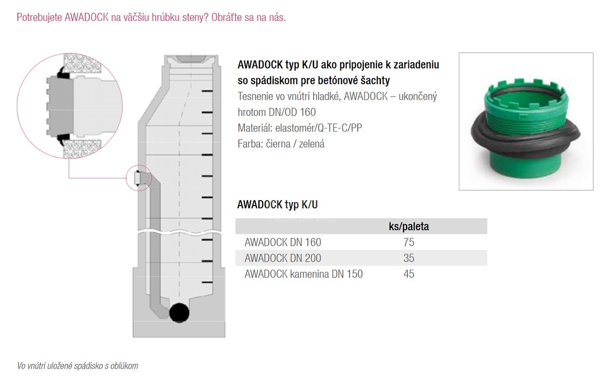 - AWADOCK typ K/U ako pripojenie k zariadeniu so spádiskom pre betónové šachty