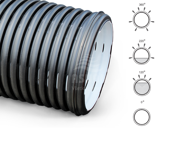 - 360° - plné odvodňovacie - štrbiny usporiadané po celom obvode rúry 360°