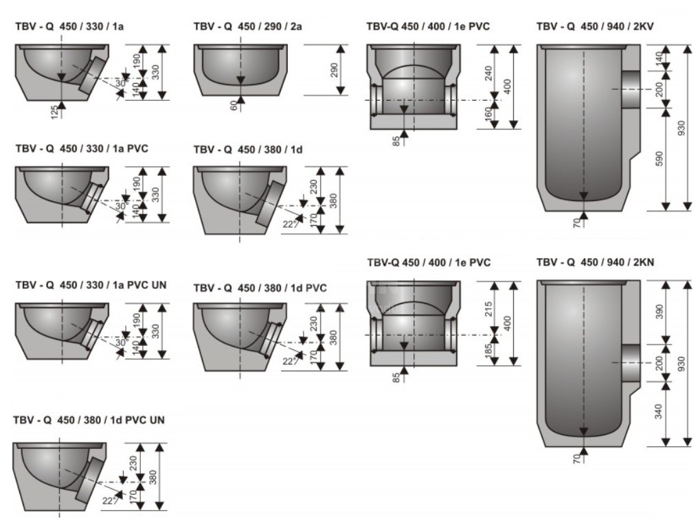 11143 Dno vpustu 1eDN450/400 2PVC150 130 kg