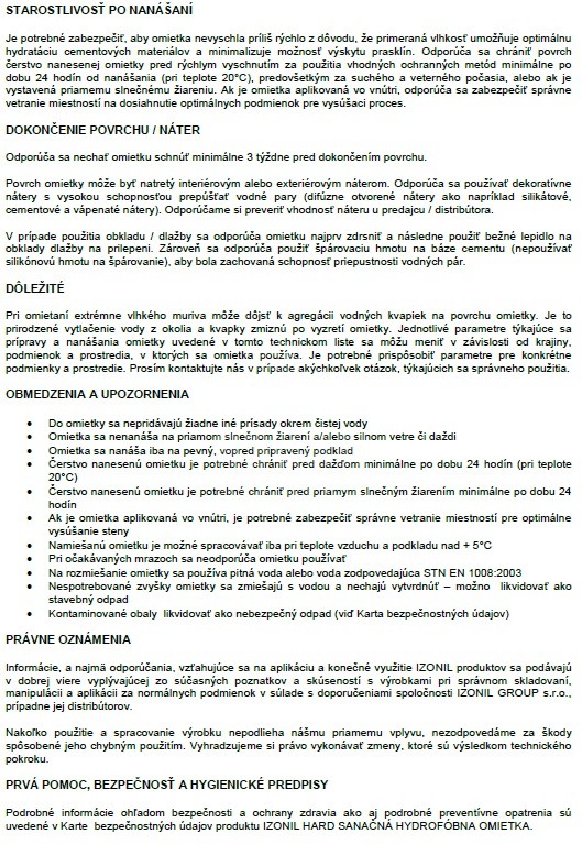 - Zároveň spĺňa požiadavky na sanačnú omietku (renovačná omietka podľa normy EN 998-1)