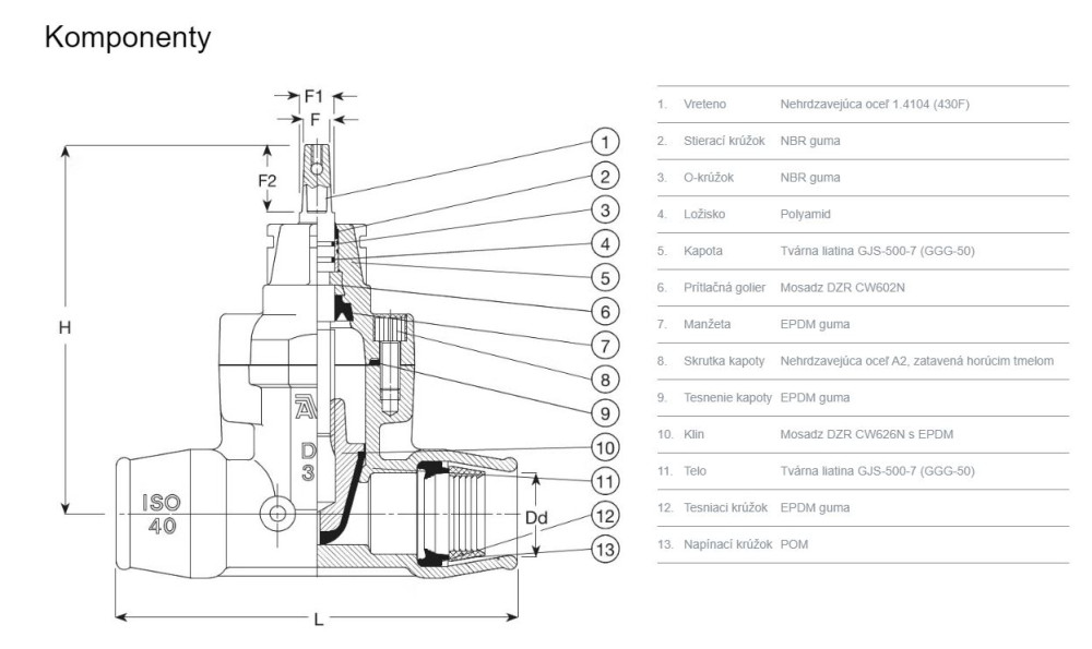 - Mosadzný klin CW626N vulkanizovaný gumou EPDM – mosadz aj guma certifikovaná pre použitie v styku s pitnou vodou – a tvarovaný vodidlami a špeciálnym gumeným profilom zaisťujúcim nízke uzatváracie momenty