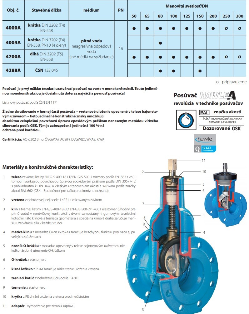 - vedenie klina z oteru vzdorného plastu s vysokou kĺzavosťou, optimalizované riešenie s ohľadom na zaťaženie zaručuje minimálne opotrebenie a uzatvárací moment