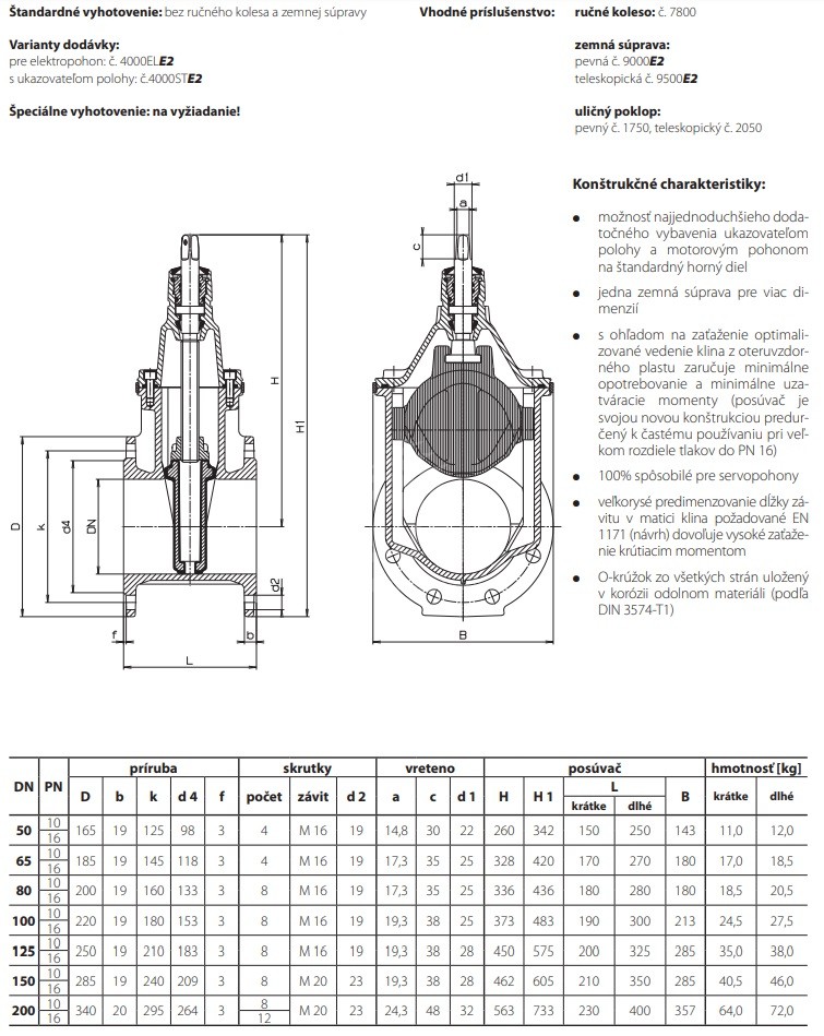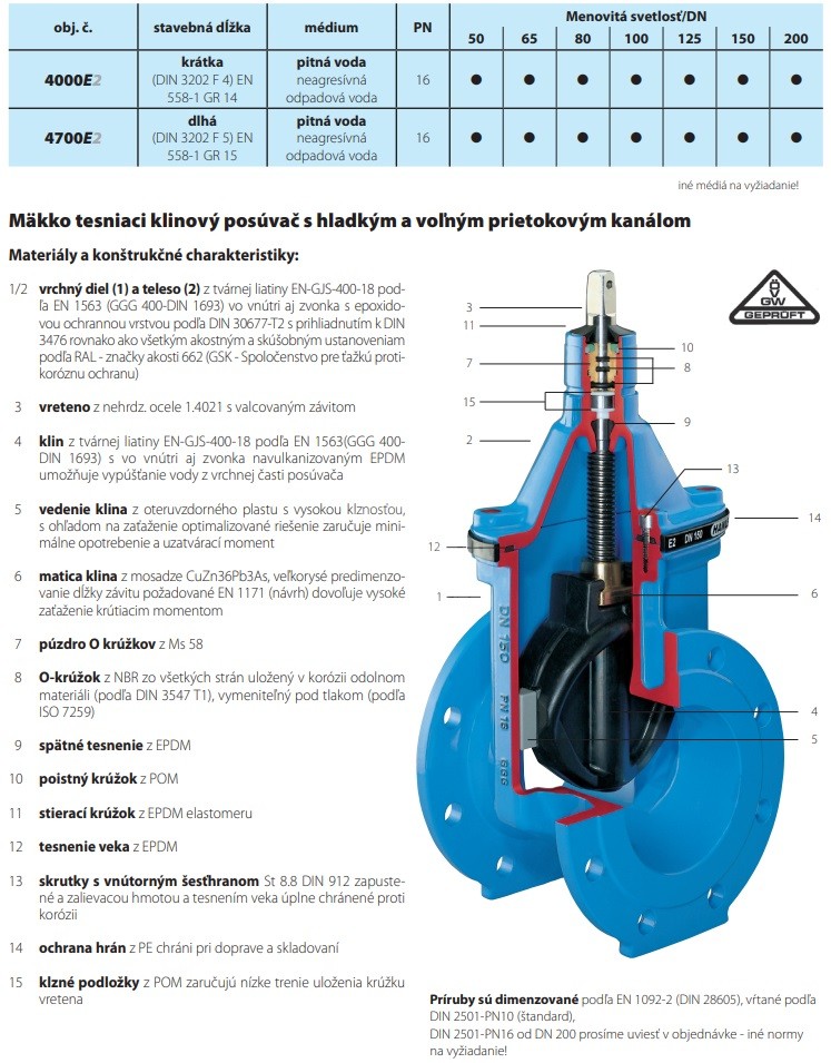 - S ohľadom na zaťaženie optimalizované vedenie klina z oteruvzdorného plastu zaručuje minimálne opotrebenie a minimálne uzatváracie momenty, (posúvač je svojou novou konštrukciou predurčený k častému používaniu pri veľkom rozdiele tlaku v PN 16)