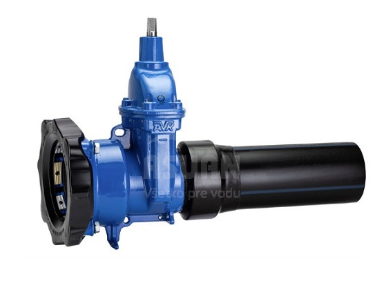 Uzatvárací posúvač s koncom SUPA MAXI™ a druhým PE čierno/modrým koncom PN10 alebo PN16.