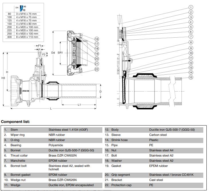 AVK posúvače s jedným koncom spojky Supa Maxi™ a jedným PE (polyetylénovým) koncom ponúkajú kombináciu dvoch známych dizajnov, ktoré zaisťujú dlhotrvajúce riešenie s jednoduchou inštaláciou. Hrdlo Supa Maxi™ sa pripája k akémukoľvek materiálu potrubia a PE koniec umožňuje priame zváranie PE potrubí. Samotný posúvač má štandardný dizajn AVK posúvača s klinom plne vulkanizovaným gumou EPDM. Trojnásobná upchávka vretena, valcované vreteno a ťažká protikorózna ochrana s GSK certifikátom.