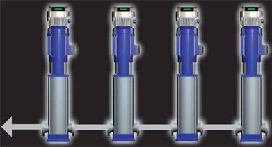 Možnosť inštalácie 1 až 8 ks čerpadiel (typ čerpadiel a upchávky je zvolený podľa daného použitia). Na motore každého čerpadla je inštalovaná regulácia Hydrovar DISA GHV (VDH/VBH)