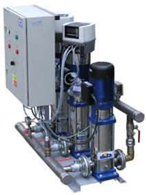 Každá stanice obsahuje1 ks čerpadla (typ čerpadel a ucpávky je zvolen dle daného použití), osazeného regulací Hydrovar. Regulace Hydrovar obsahuje frekvenční měnič a řídící jednotku (SPS). Regulace je ovládána od signálu tlakového snímače. X ks čerpadel s konstantními otáčkami (typ čerpadel a ucpávky je zvolen dle daného použití), které jsou připínány prostřednictvím kontaktu od regulací v případě, kdy regulovaná čerpadla Hydrovar už nejsou s to plnit průtokové požadavky.