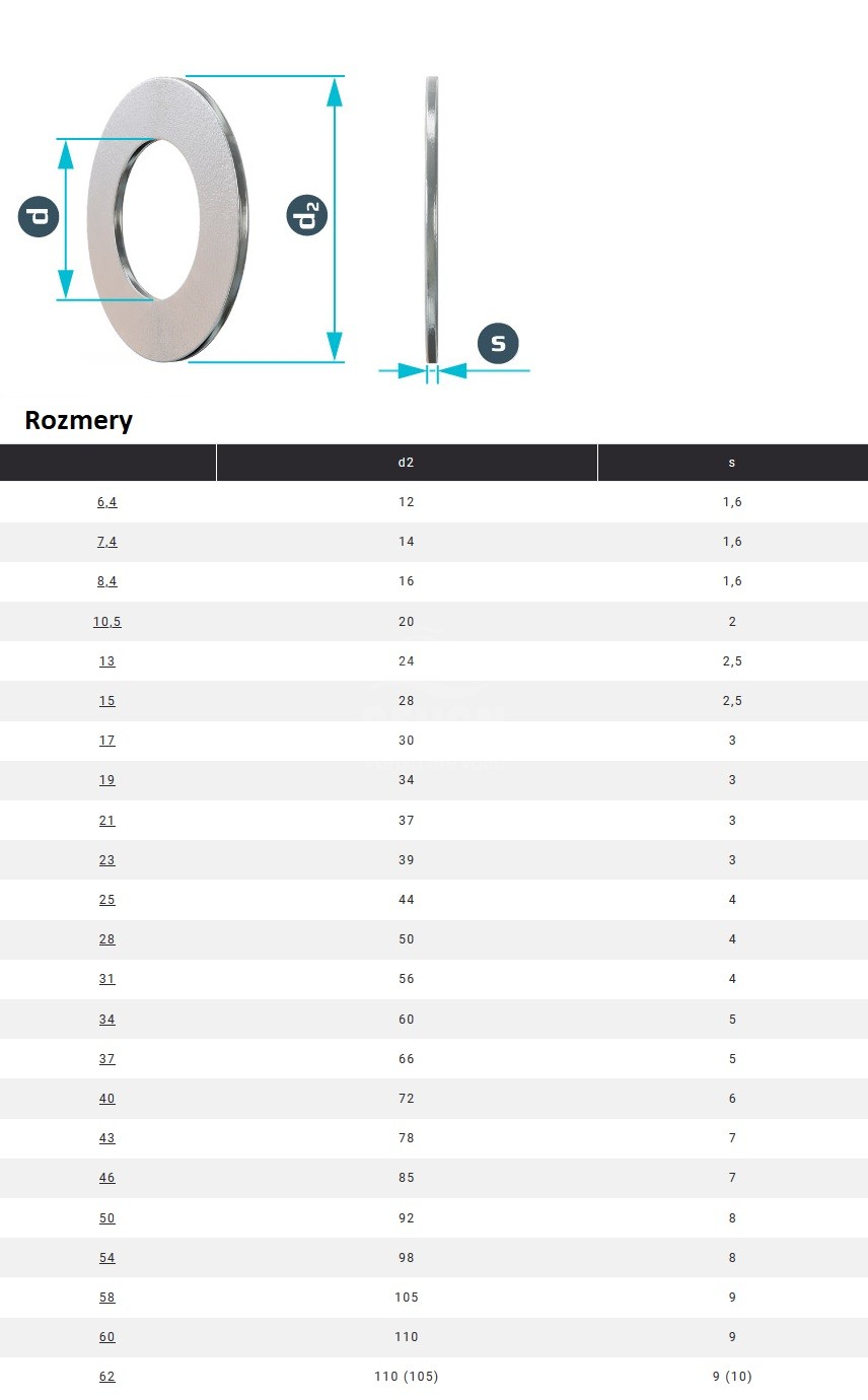 Podložka plochá pre skrutku so šesťhrannou hlavou - DIN 125 A