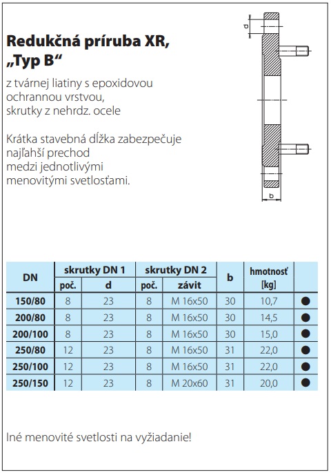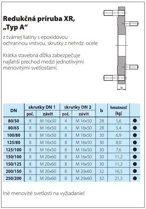 Redukčná príruba XR "Typ A" alebo "Typ B"