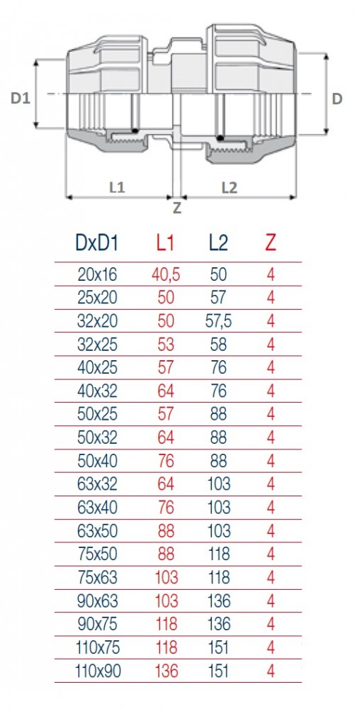 - Mechanické spojky z polypropylénu (PP) slúžia na spájanie polyetylenového (PE) potrubia.