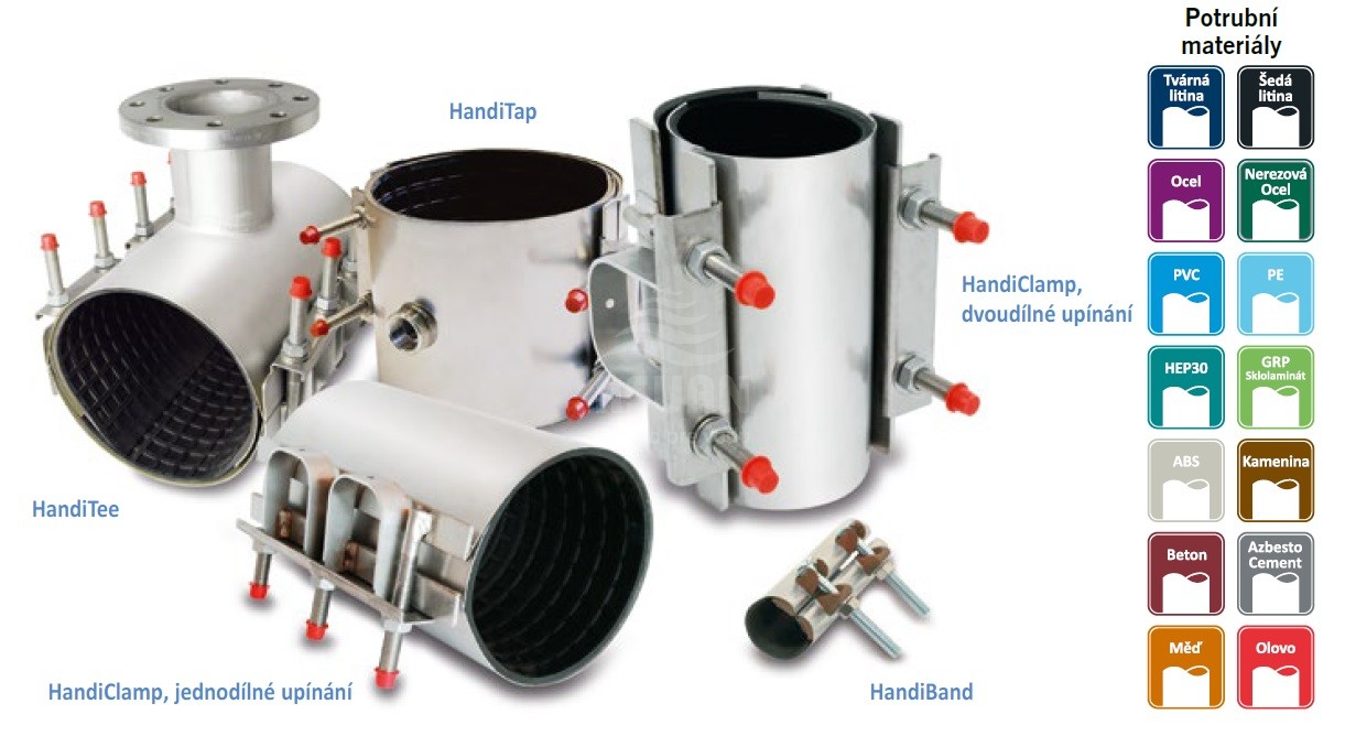 K dispozícií v rôznych dĺžkach sú výrobky radu Handi vhodné praktický pre akýkoľvek potrubný materiál a sú k dispozícií buď s EPDM, alebo NBR tesnením s maximálnou prevádzkovou teplotou 40 °C.