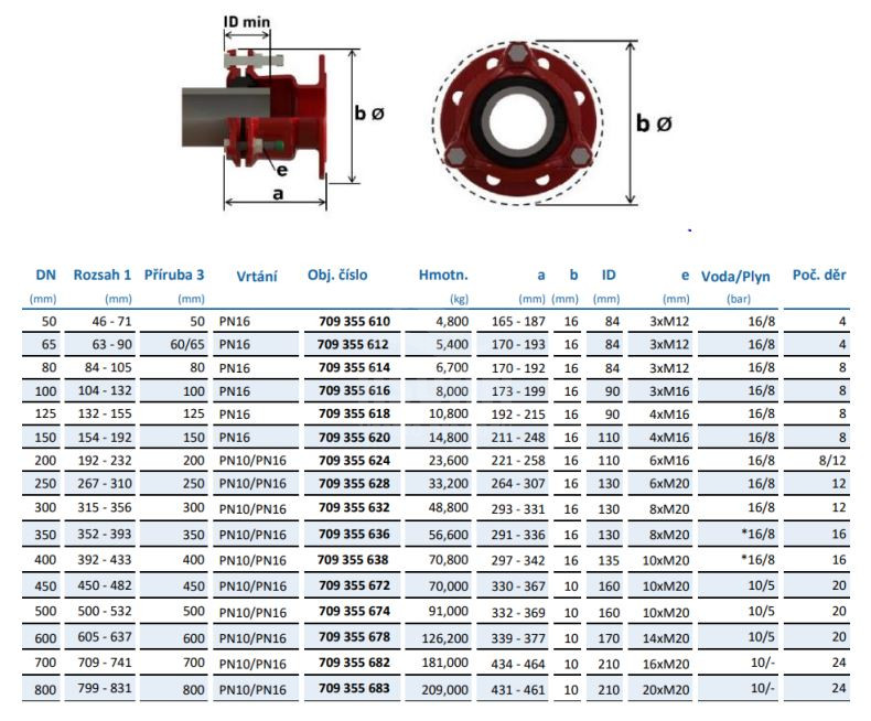 • DN 625 – DN 825 iba pre vodu